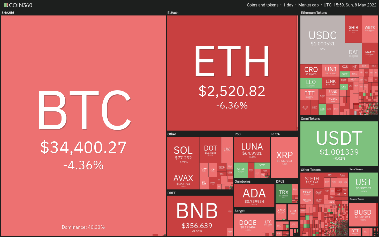 Wenn die Stimmung bärisch ist, verkaufen die Trader bei jeder noch so kleinen negativen Nachricht. Die kurzzeitige Entkopplung des Stablecoin von Terra namens TerraUSD (UST) vom US-Dollar hat den Verkaufsdruck auf dem Kryptomarkt ebenfalls erhöht.