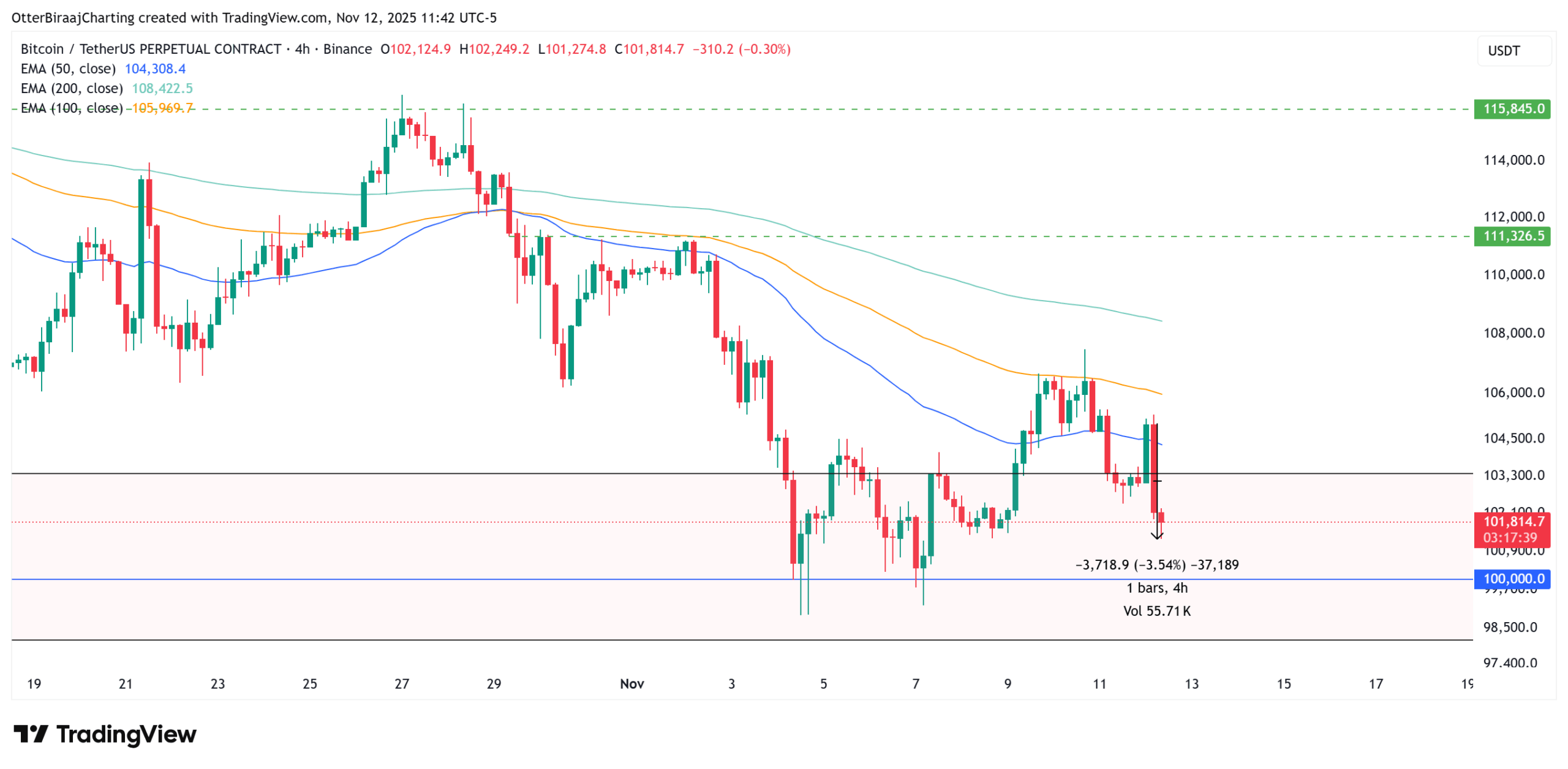 Die US-Aktienmärkte legten am Mittwoch kräftig zu, da die Anleger eine positive Abstimmung des US-Repräsentantenhauses über einen Gesetzentwurf zur Beendigung des Shutdowns der Regierung erwarteten. Bitcoin (BTC) hingegen fiel von einem Tageshoch von 105.300 US-Dollar auf ein Wochentief von fast 101.200 US-Dollar und verzeichnete damit einen Rückgang von 3,4 %.