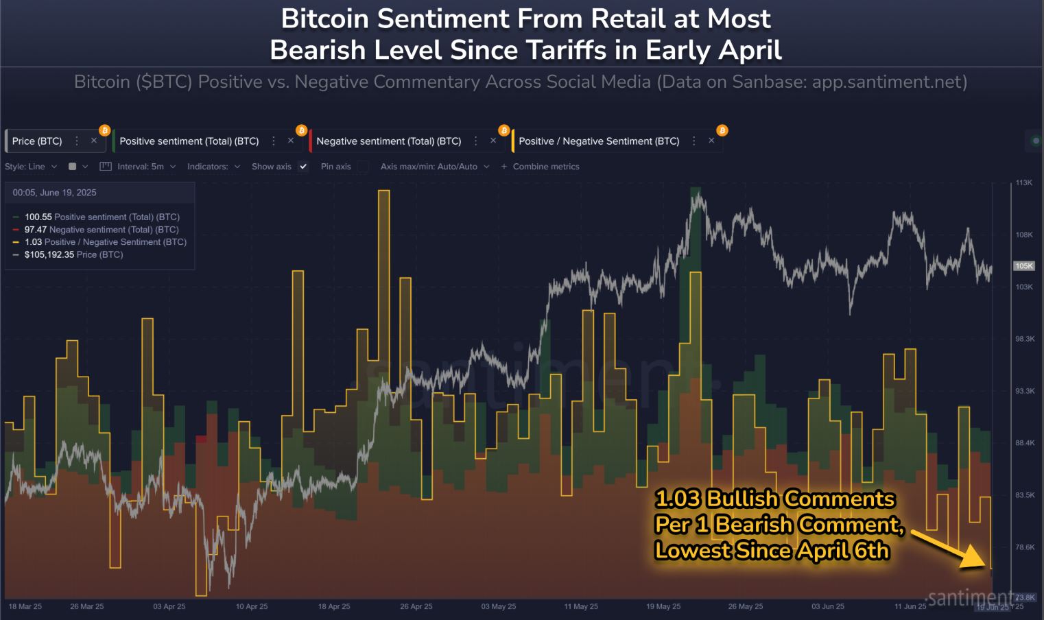 Er fügte hinzu, dass die Social-Media-Analyse des Unternehmens ergeben hat, dass es nur 1,03 bullische Kommentare für jeden bärischen Kommentar gibt, was seit dem Höhepunkt der ersten FUD-Phase (Angst, Unsicherheit und Zweifel) als Reaktion auf die Zölle am 6. April nicht mehr vorgekommen ist.