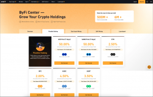 ByFi Center ist die Asset-Management-Plattform von Bybit. Es hilft sowohl neuen als auch erfahrenen Händlern, ihre Krypto-Assets leicht zu erweitern. Neben Flexibles Staking bietet ByFi Center auch DeFi Mining, Dual Asset Mining und Launchpool.