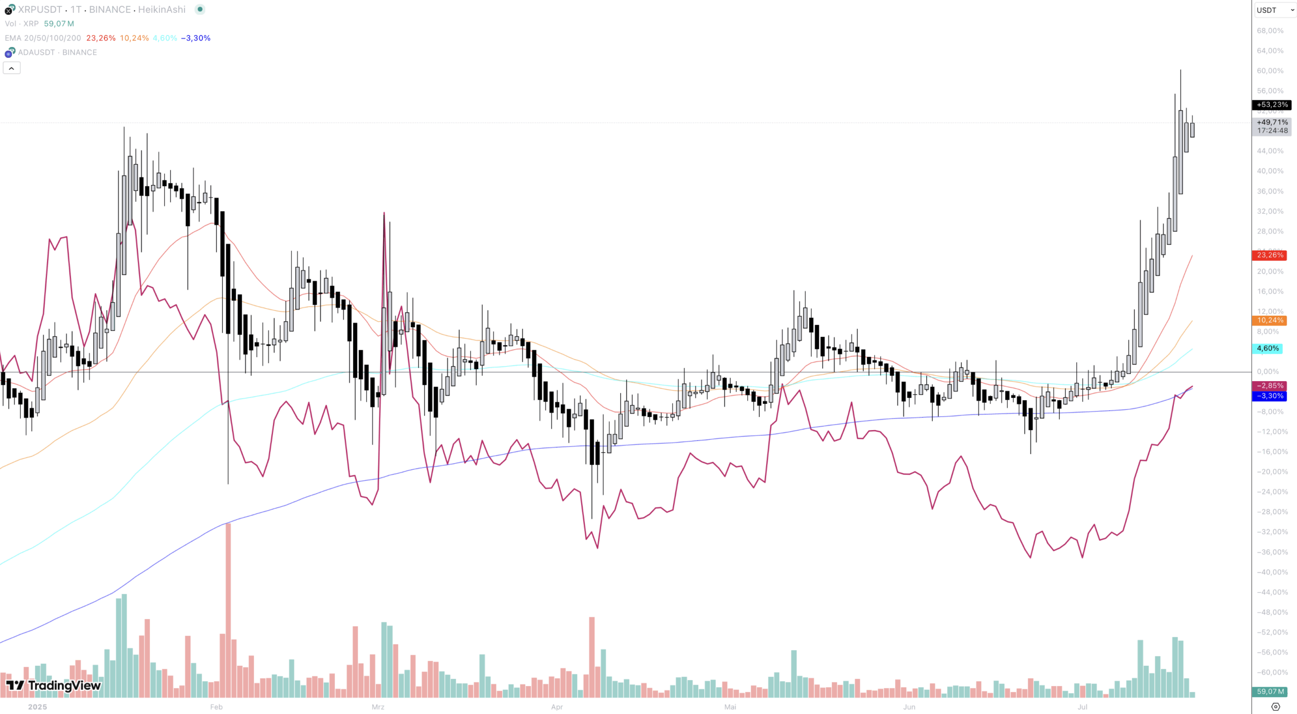 Doch könnte Cardano im Juli 2025 die Aufholjagd starten und auf XRP folgen?