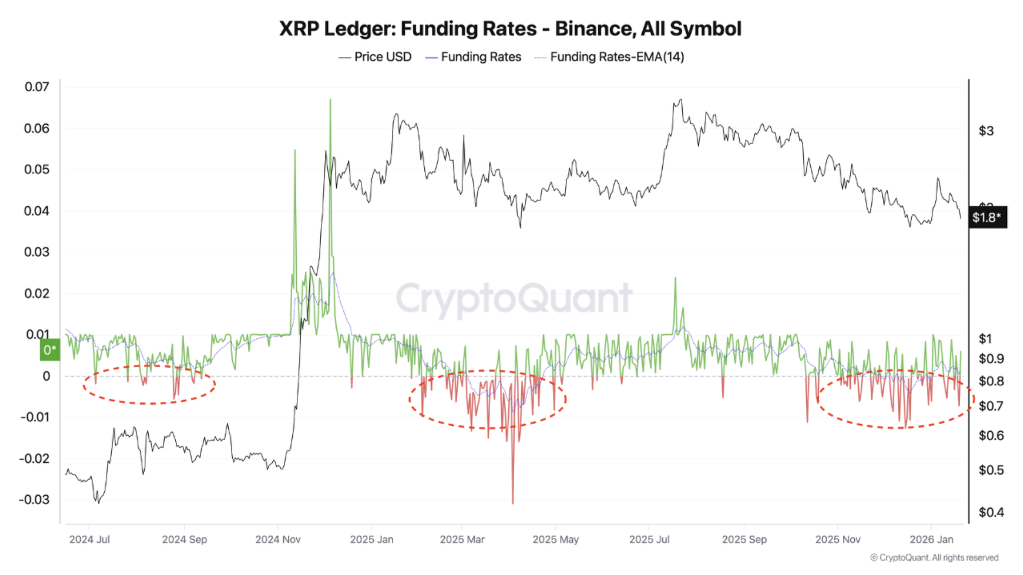 Die Funding-Rates von XRP (XRP) auf Binance spiegeln aktuell ein Verhalten wider, das seit 2024 immer wieder vor starken Kurserholungen zu beobachten ist.