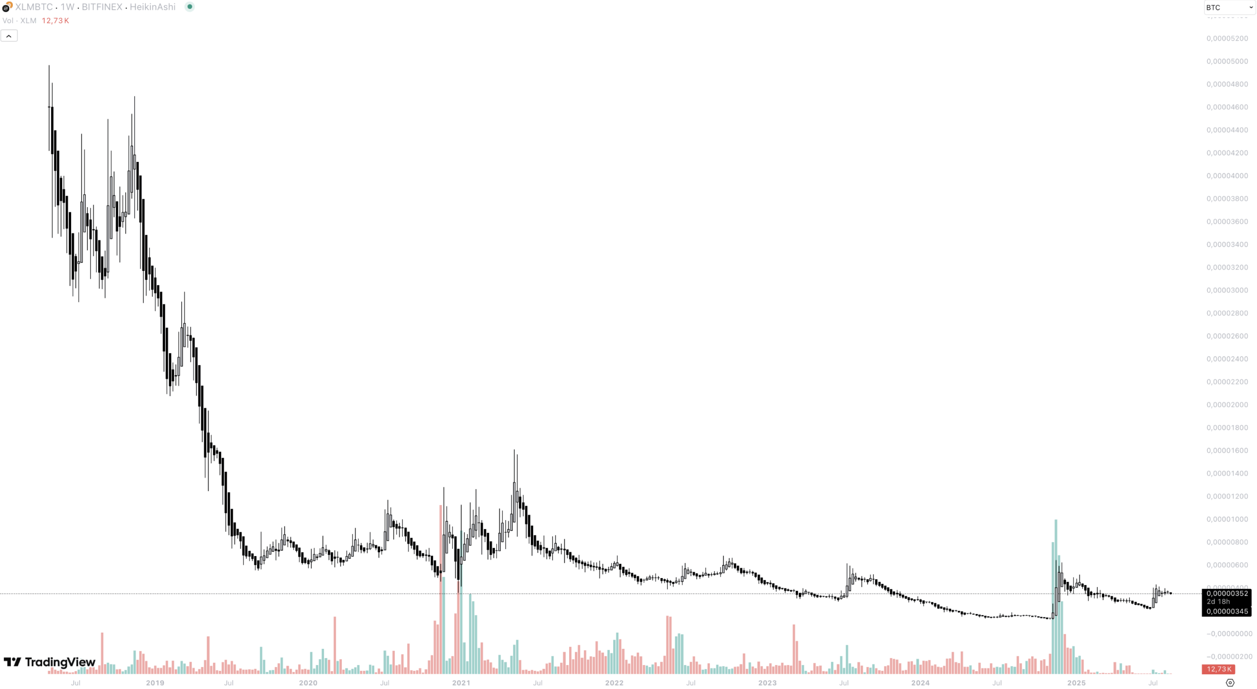 Im langfristigen Vergleich gegen Bitcoin bleibt das Bild jedoch schwach: Seit Jahren verliert XLM stetig an Wert, sodass sich die Coin vor allem für kurz- bis mittelfristige Trades eignen dürfte.