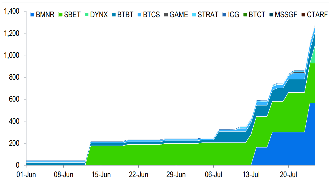 Eine Woche zuvor hat ein neu gegründetes Unternehmen namens Ether Machine Pläne angekündigt, “eine der größten Onchain-ETH-Positionen einer öffentlichen Einrichtung” zu lancieren. Es plant, über 400.000 ETH im Wert von mehr als 1,5 Milliarden US-Dollar zu erwerben und an der Nasdaq unter dem Tickersymbol “ETHM” notiert zu werden, wie Cointelegraph am 21. Juli berichtete.