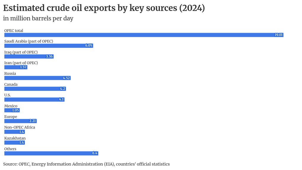 Technically, India could replace Russian oil with barrels from the Middle East, Latin America or the U.S., said Kpler analyst Sumit Ritolia. OPEC members are estimated to hold more than 3 million barrels per day of spare capacity that could help fill any gap.