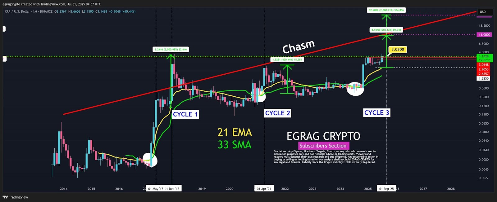 „Ein Abschluss über 3,03 US-Dollar wäre für XRP der erste Monatsabschluss über dieser Marke jemals“, so seine Feststellung. Dem fügt er an: